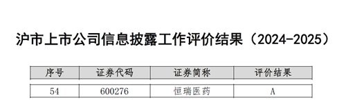 与此同时,在上海交易所公布的2024-2025年度沪市上市公司信息披露工作评价中,凯时官网医药再次荣获最高评级——A级。